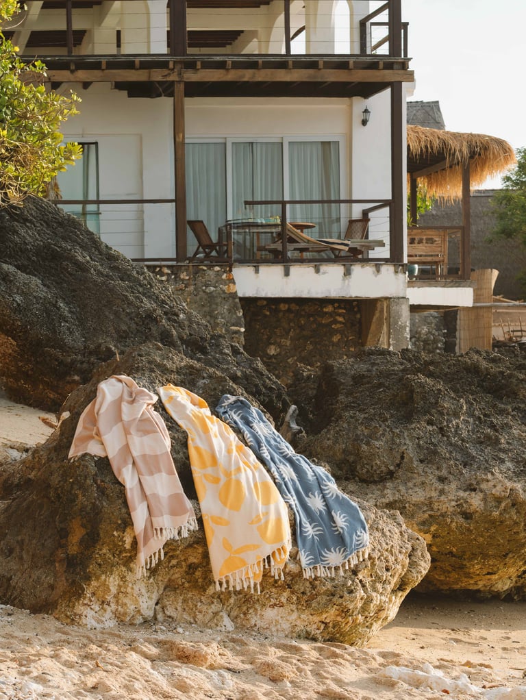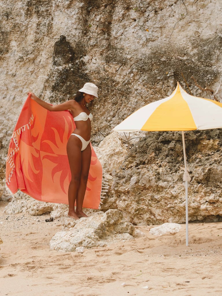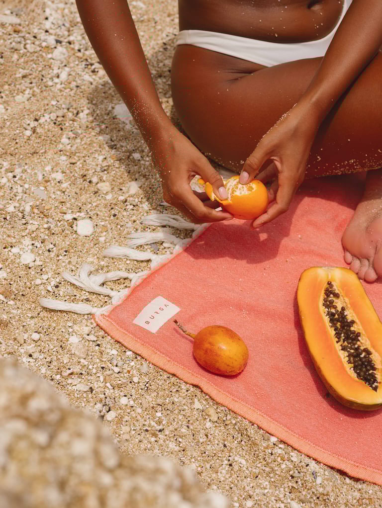 Photographed with a strong summer mood, this campaign showcases Burga’s colourful Turkish towel collection. The visuals focus on versatility, texture and how the towels naturally complement accessories and everyday styling.